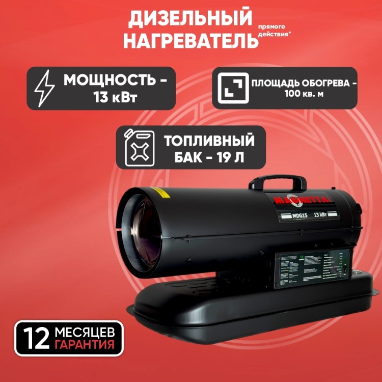Отзывы о Magnetta MDG15 Дизельный нагреватель прямого действия 13 кВт - 105024181