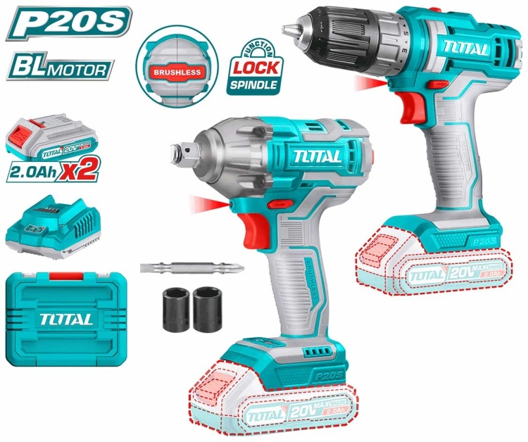 TOSLI230702 - ТОТАL Набор аккумуляторных инструментов Li-ion 2в1 Шуруповерт + Гайковерт 20v - 117506287
