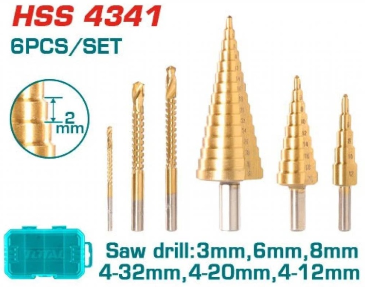 Отзывы о TACSD2061 - ТОТАL Набор фрезеровальных и ступенчатых сверел 6шт - 120961931