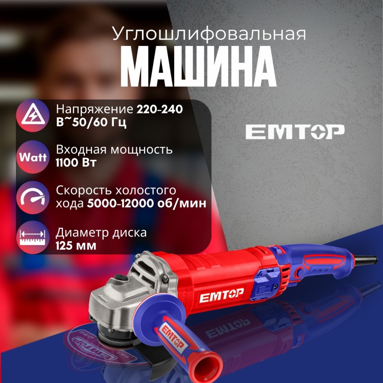 Отзывы о EAGRS11053 - EMTOP Углошлифовальная машина 125мм, 1100Вт, 5000-12000 об/в мин - 135125067