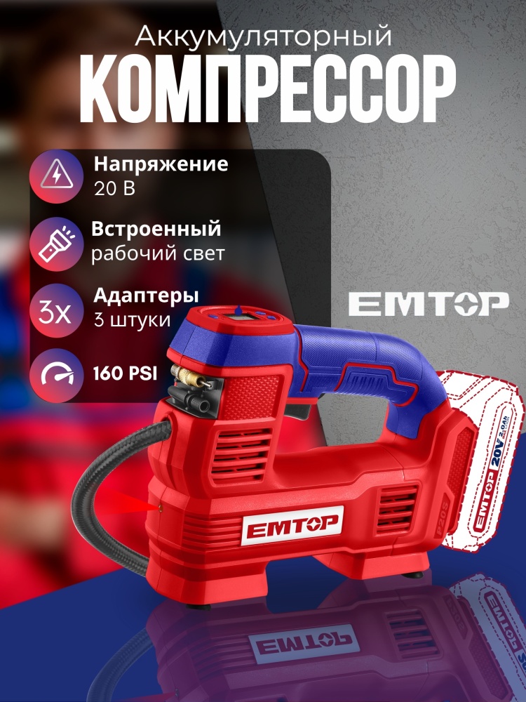ELAC2012 - EMTOP Аккумуляторный компрессор, 20V, 11Bar для подкачки шин - 135128780