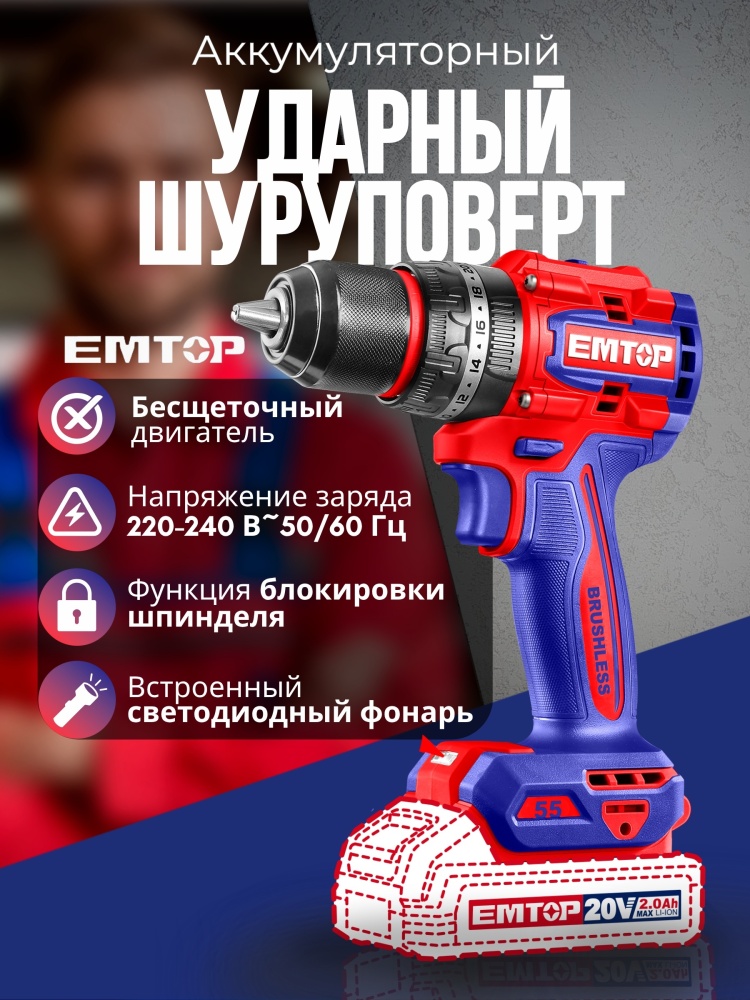 Отзывы о ECIDL20668 - EMTOP Компактный бесщеточный аккумуляторный ударный шуруповерт 20V, 66Nm - 135218235