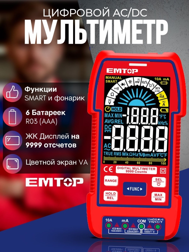 Отзывы о EDMR5110004 - EMTOP Мультиметр цифровой AC/DC, цветной дисплей, 1000A - 135911221