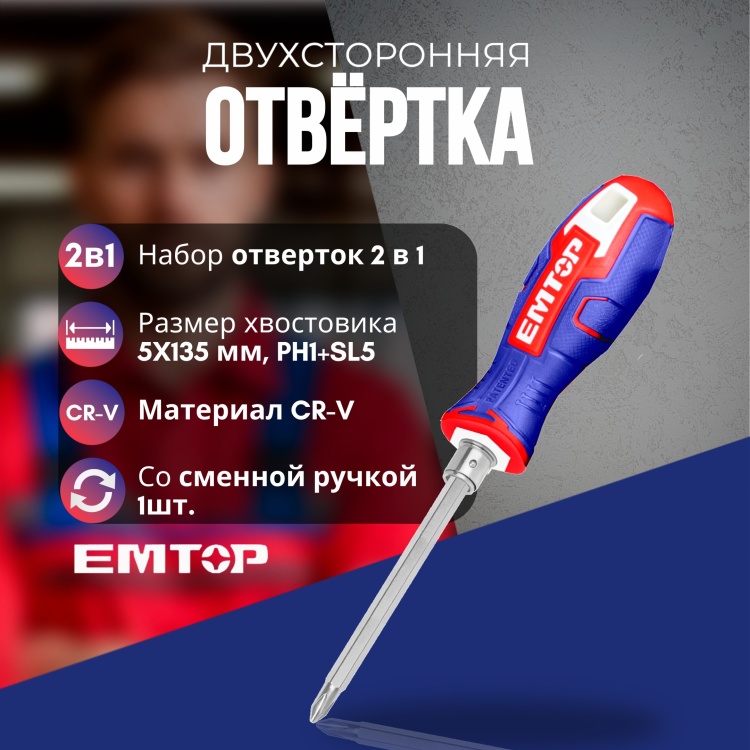 Отзывы о ESDRH0203 - EMTOP Отвёрткa двухсторонняя 2 в 1, 135мм - 136386595