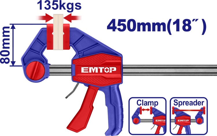 Струбцина быстрозажимная EMTOP 450 мм арт. ECLPQ80181 - 141504680