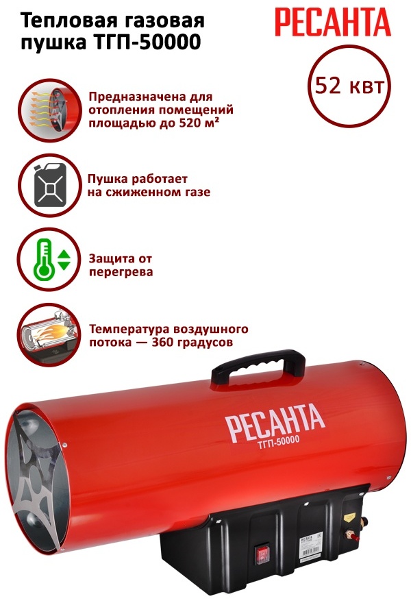 Отзывы о 67/1/16 - Тепловая газовая пушка ТГП-50000 Ресанта, шт - 6201027